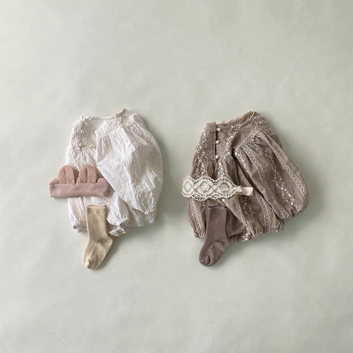 The Dutch Baby Lace Romper, crafted from 100% sandwashed linen, is designed to be a cherished staple in your baby’s wardrobe, becoming softer and more beautiful with each wash. Available in two timeless shades - Pearl and Chocolate.