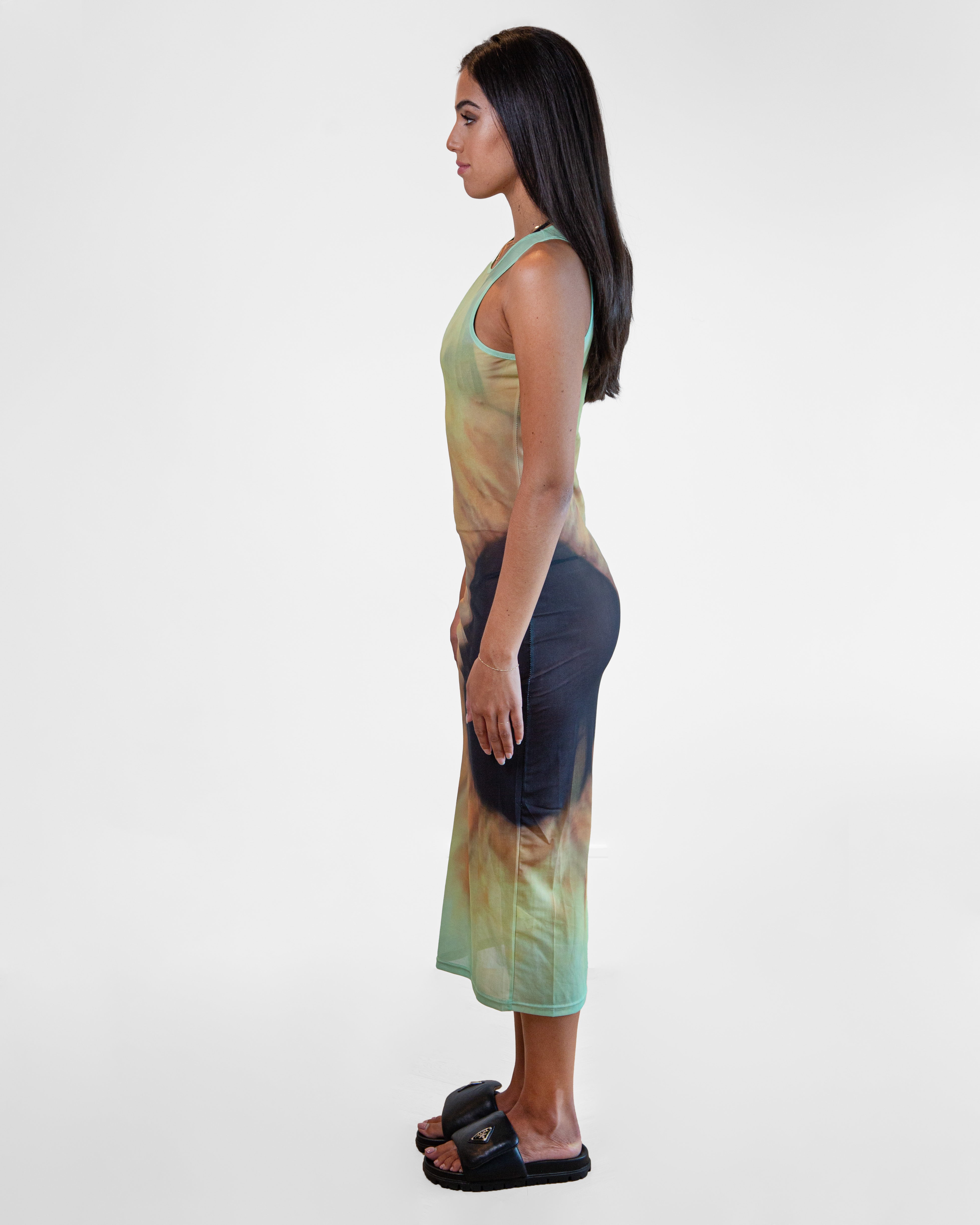 Every inch of our Dutch high neck yellow gradient tie dye long dress will see you sparkle from here to Greek Islands and back again. Made from stretch-mesh, the smoothest and softest fabric, body-hugging fit and a sporty racerback. Will flatter all bodyshapes.